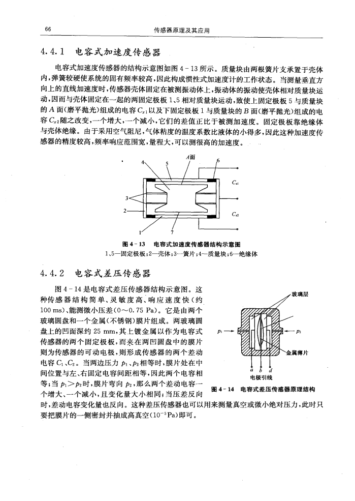 | 以下是引用片段: 電容式加速傳感器的結構示意圖如圖4 - 13所示,質量塊由兩根簧片支 承置于殼體 內,彈簧較硬使系統的固有頻率較高,因此構成慣性式加 速度計的工作狀態。當測量垂直方向上的直線加速度時,傳感器殼體固 定在被測振動體上,振動體的振動使殼體相對質量塊運動,因而與殼體 固定在一起的兩固定極板1、5相對質世塊運動…… |