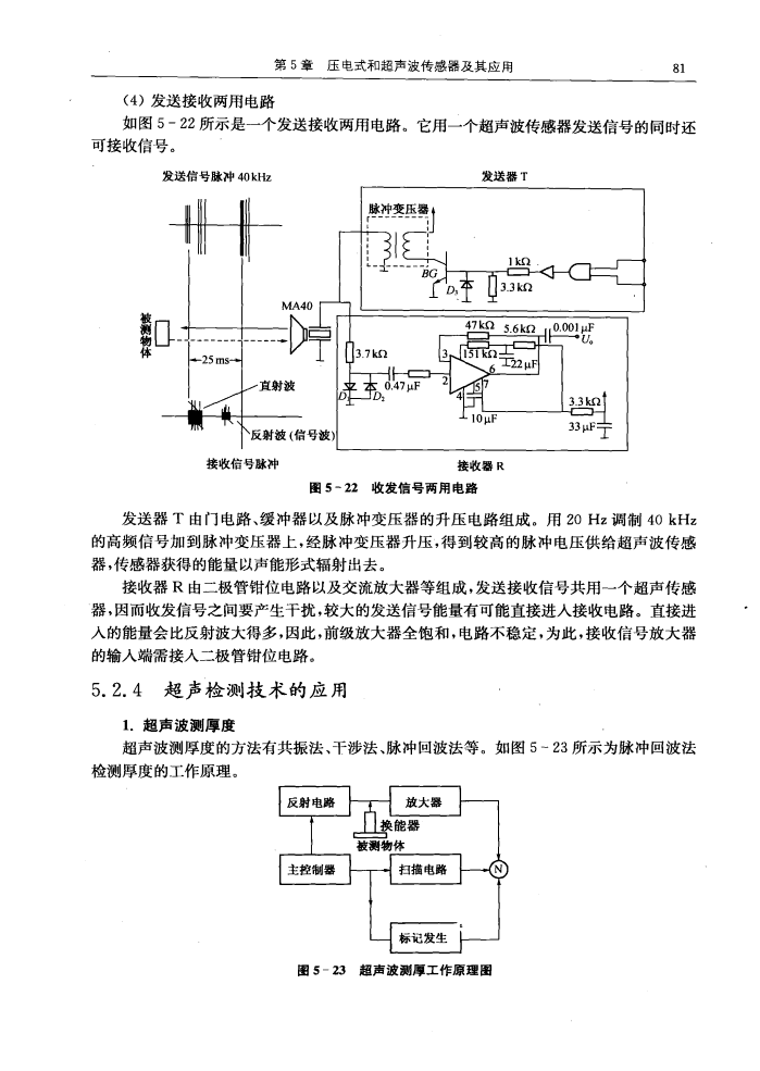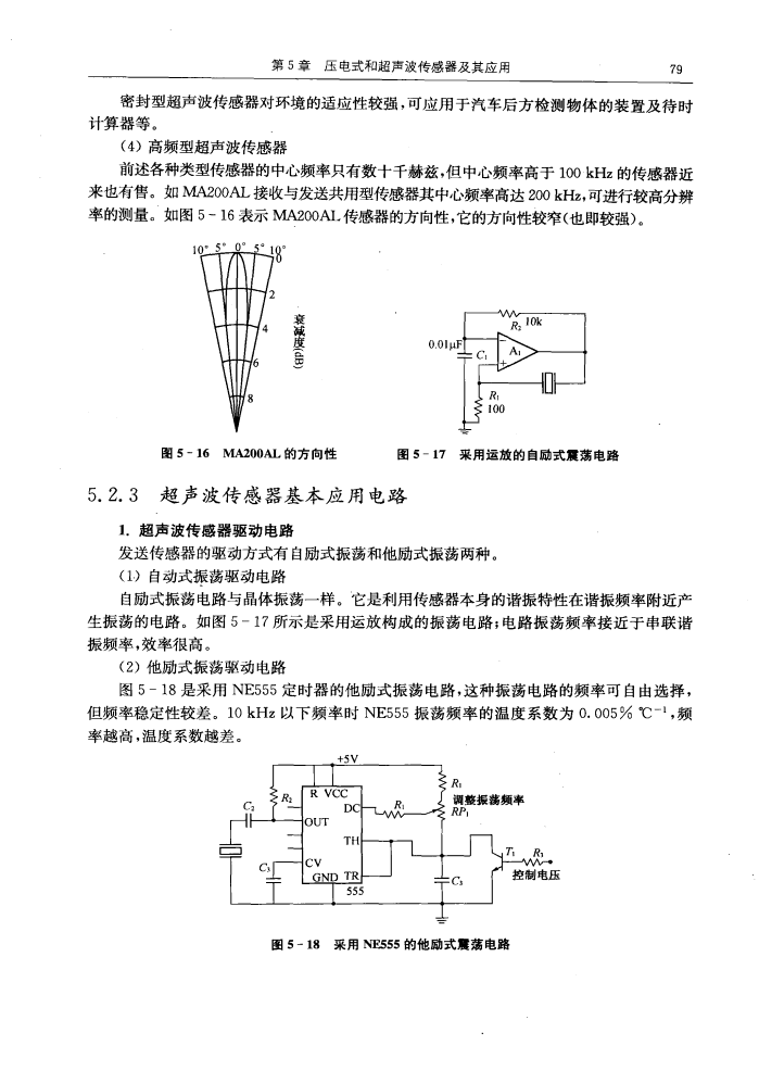 | 文摘: 1、超聲波傳感器驅動電路 發送傳感器的驅動方式有自勵式振蕩和他勵式振蕩兩種。 (1) 自動式振蕩驅動電路 自勵式振獲電路與晶體振蕩一樣。它是利用傳感器本身的諧 (2) 他勵式振蕩驅動電路 圖5 - 18是采用NE555定時器的他勵式振蕩電路,這種振蕩電路 |
