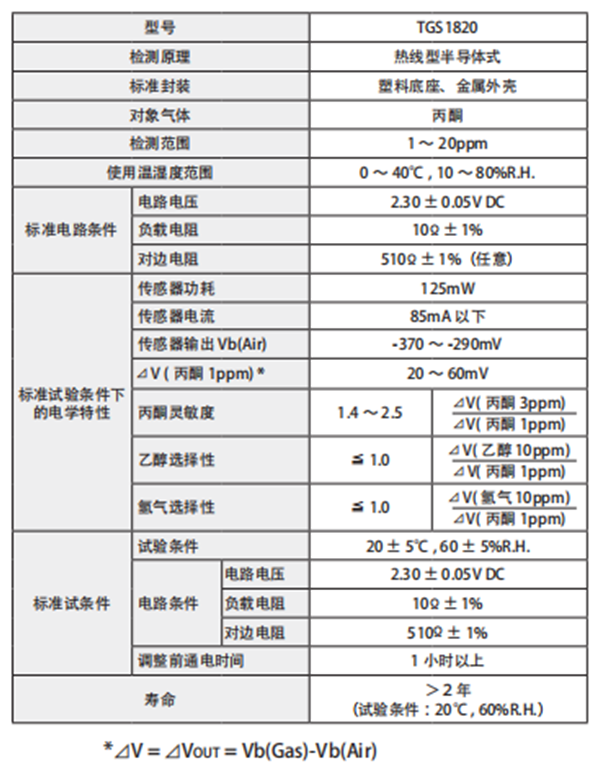 一、TGS1820 (檢測丙酮的氣體傳感器)主要特點: