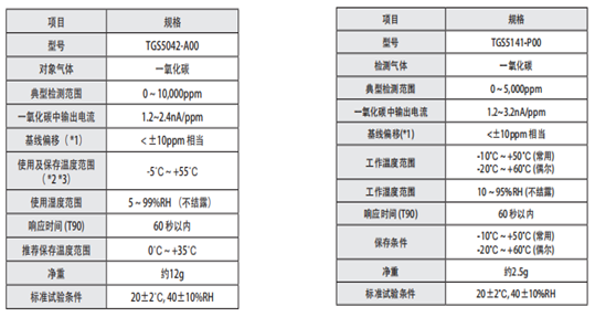 TGS5141是費加羅研發的可電池驅動的電化學式傳感器,使用一個特殊的電極取代了儲水器,由于去除了TGS5042中使用的儲水器,TGS5141與TGS5042相比,其外形尺寸縮減到只有后者的10%大小。超小型的體積使其可以成為諸如便攜式一氧化碳檢測儀、微型住宅一氧化碳檢測儀、多用途火災檢測儀的理想選擇。