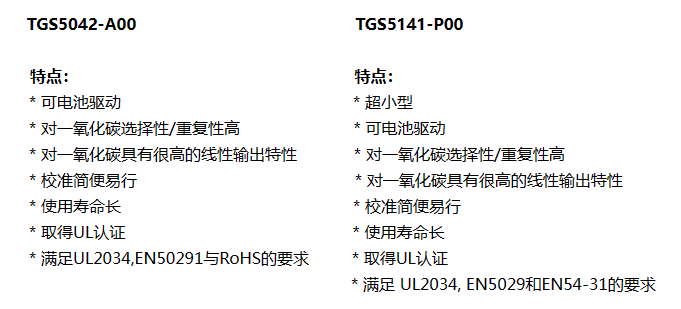 為了預防CO中毒,讓家人放心,在容易產生CO的環境里應安裝和定期檢查CO報警器,尤其是在住宅和商場等密閉空間內。在這里深圳市新世聯科技有限公司給大家推薦兩款·半導體式傳感器TGS5042-A00,TGS5141-P00。適用于住宅與商用一氧化碳檢測儀, 工業一氧化碳監控,室內停車場通風控制,火災報警器等場景,那么TGS5042-A00,TGS5141-P00有什么區別呢?