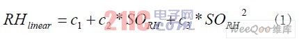 濕度值還和當前溫度值相關,因此還要對其進行溫度補償,補償公式如公式(2)所示,各系數如表2所示。