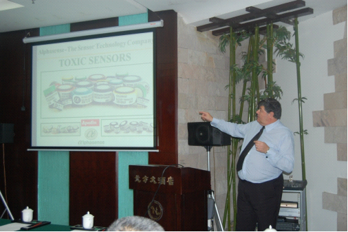 2013年4月22日新世聯科技和Alphasense在深圳舉辦“空氣質量和PM2.5顆粒物傳感器應用技術交流會”,英國Alphasense公司市場和銷售總監Arthur先生和新世聯科技公司總經理陳運動先生就工業氣體傳感器和PM2.5顆粒物傳感器作出技術應用講解。Arthur先生的技術講解分為兩個部分,上半部分主要涉及氣體傳感器包括氧氣傳感器、有毒氣體傳感器、可燃傳感器、PID傳感器、紅外線傳感器技術、規格、發展現狀及技術瓶頸等,下半部分主要講述與空氣質量尤其是PM2.5相關的傳感器的發展歷史與未來展望。